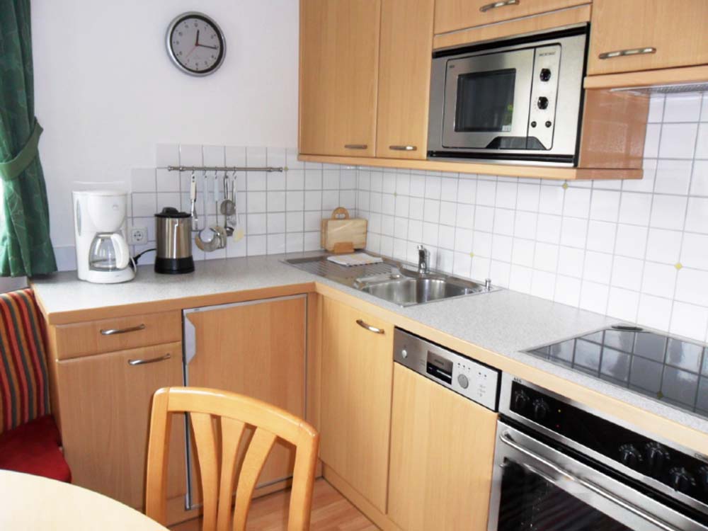 und einer komplett eingerichteten Wohnküche mit Geschirrspüler, Mikrowelle, Wasserkocher, Kaffeemaschine, E-Herd mit Backrohr. In der Küche und im Schlafzimmer befinden sich ein Flatscreen-Fernseher (Kabel-TV) und Radio, W-Lan in jeder Wohnung kostenlos!